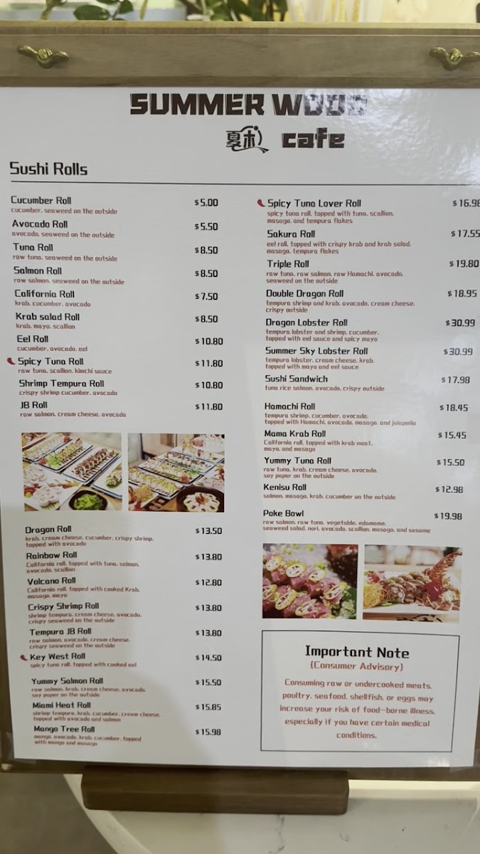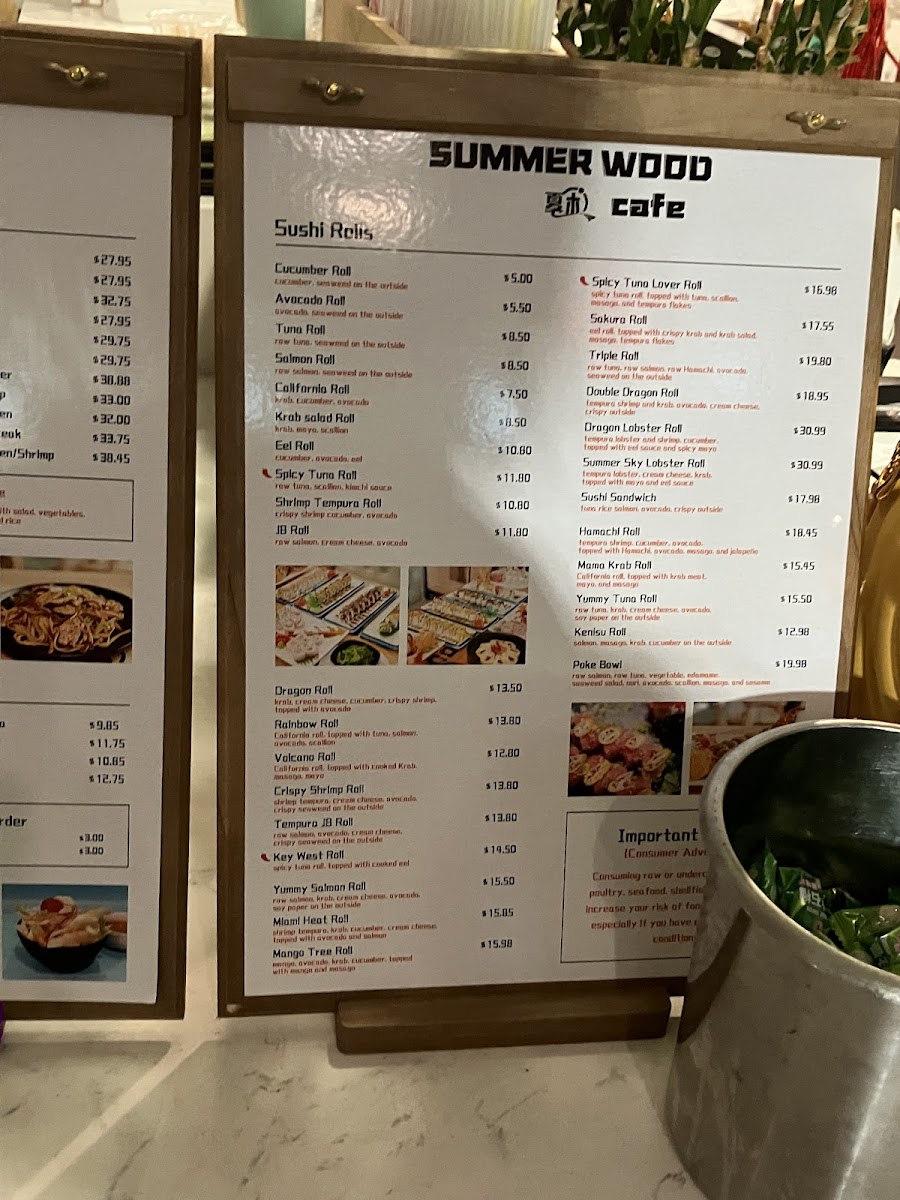 Mango , avocado,krab, cucumber,top with mango and masago